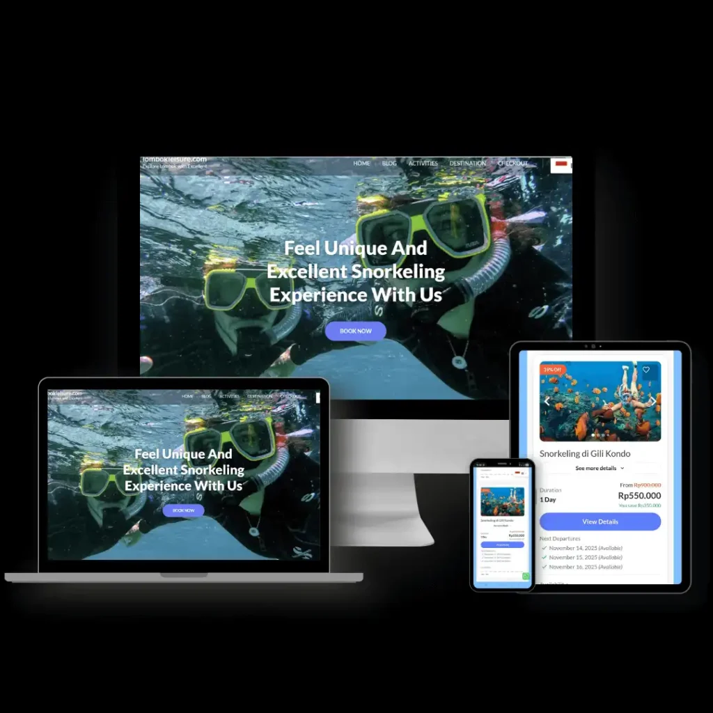• 5–7 Halaman Utama (Home, About Us, Tour Packages, Gallery, Blog, Contact, Testimonial)